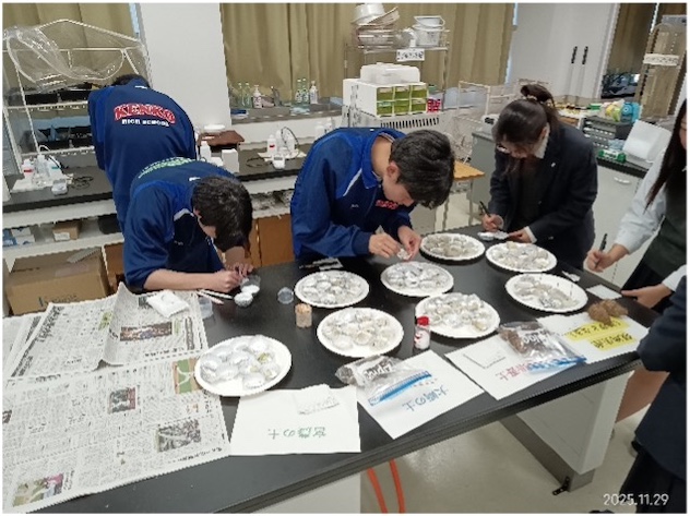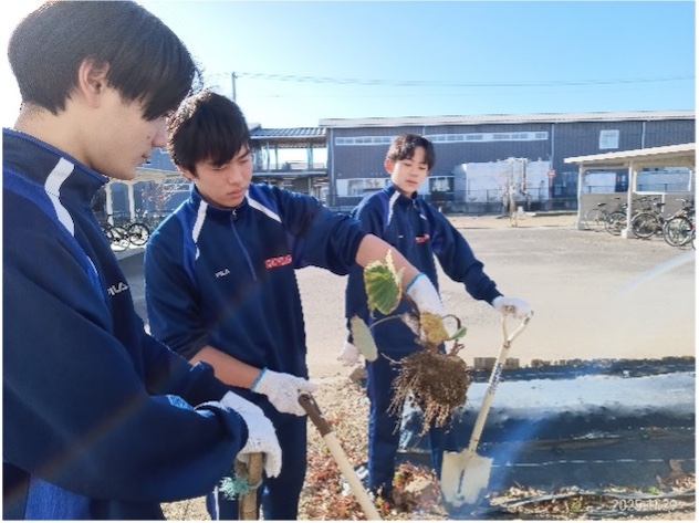 11月29日(土)、連携校である宮城県農業高等学校にて交流活動を実施しました。今回は、圃場で定植していた上伊場野里芋の収穫と収穫量調査、さらに、複数の条件で栽培した上伊場野里芋の食味調査を行いました。