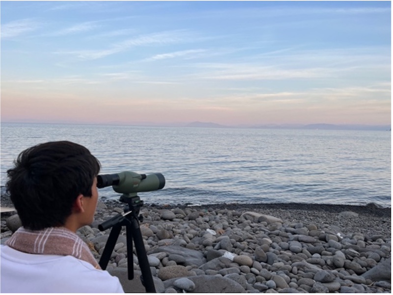 本校理数探究科生徒7名が特別な許可を得て冠島に上陸し、冠島調査研究会のオオミズナギドリ調査に参加しました。昼間は植生や昆虫の観察、夕方には「鳥まわり」の行動観察、夜は標識調査を行いました。ヒナの体重測定や飛び立ち調査も実施し、多様な自然体験を通じて多くのことを学びました。今後は得られたデータを分析し、地元の小中学生に舞鶴の自然や保全の大切さを発信していきます。