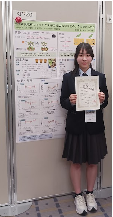 3月18日(水)に開催された第137回日本森林学会大会の「第13回高校生ポスター発表」に参加してきました。タイトルは「バイオ炭散布によってクヌギの根の形態はどのように変わるのか」。発表者は1年生で、昨年の10月から研究活動を始めたばかりでありながら堂々と発表していました。