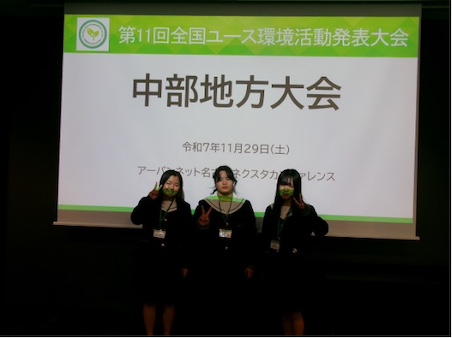 令和7年11月29日(土)、アーバンネット名古屋ネクスタカンファレンスにおいて第11回全国ユース環境活動発表大会中部地方大会が開催され、書類選考を通過した中部地方の11校が出場し、佐屋高校園芸科学科2年生ベジタブルコースの生徒3名が、規格外農産物の有効利用のプレゼンを行い、協賛企業特別賞を受賞しました。