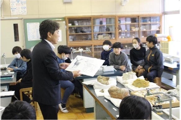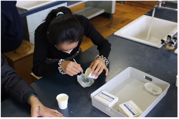 11月13日に「袖ケ浦市郷土博物館」との連携授業を行いました。前日に学習したアルギン酸が入っている製品を使って、化石のレプリカ作りに挑戦しました。化石の型取りにアルギン酸を含む歯科印象材を使うことで、レプリカ製作を短時間で行うことができました。また、袖ケ浦市内で発見されたナウマン象の歯の化石や二枚貝の化石を手に取って観察し、大昔の袖ケ浦市近辺の様子をイメージすることができました。
