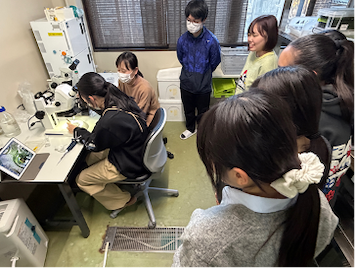 1日目は、大学内施設の見学、ホルモン注射、2日目は採卵、人工授精、受精卵からの発生の観察、卵へのマイクロピペットを使ってのインジェクション、3日目は、正常発生する胚の観察を体験しました。研究に必要な知識と技術を学ぶことができました。本校では、高校生になって本格的に研究に取り組む前に、受精卵を採取できる技術を学んでいる段階です。