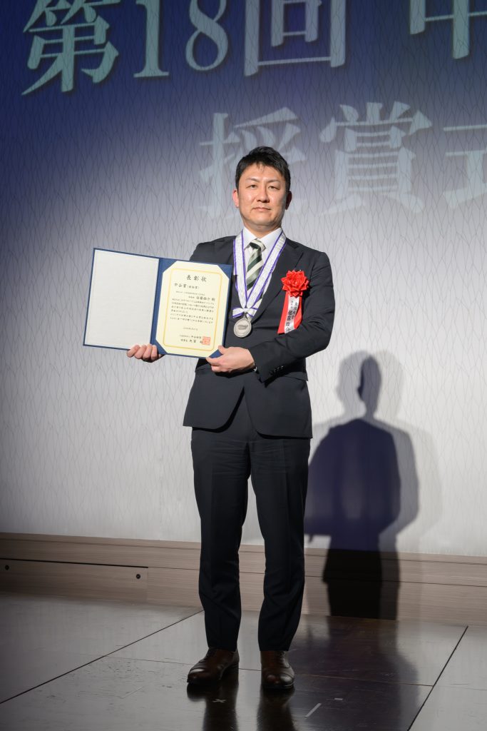授賞式では矢冨裕理事長から表彰状が、また前回の中谷賞大賞受賞者である瀬藤光利先生に登壇していただきプレゼンターとして表彰を行いました。残念ながら大賞の山東先生はどうしても外せない所要から当日は欠席でしたが、「今回の受賞を励みとしてより一層研究に邁進したいです」と映像を通じて、意気込みを表明してくださいました。