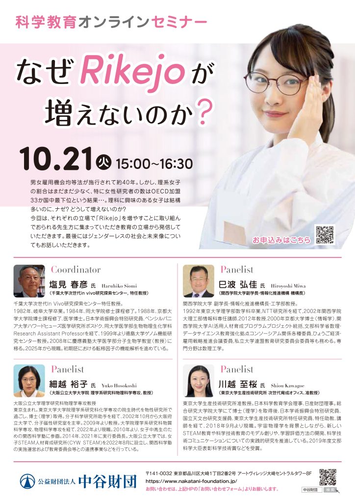 科学教育セミナー 〜教育の現場から見たジェンダーレスの社会と「未来像」〜「なぜ Rikejo が増えないのか?」を開催
