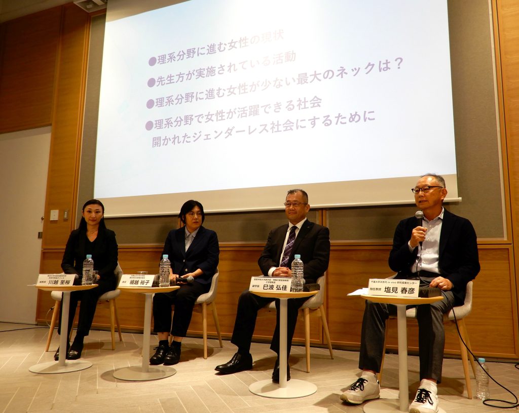 「本人だけではなく、保護者や教師にもバイアスやアンコンシャスバイアス(無意識の思い込み)がある」(細越教授)ことや、「女性同士でも『そんな学部に進むの?』といった同調圧力がある」(巳波教授)ことなど、理系に進む女性が少ない現状の原因分析のほか、「スーパーウーマンばかり紹介することもよくない。もっと一般的な理系女性のキャリア形成を紹介すべき」(川越准教授)、「ジェンダーに限らず、何らかの属性に基づく先入観を排して個人差を認めるべき」(塩見特任教授)などの解決策を示唆していただきました。